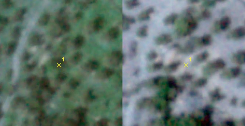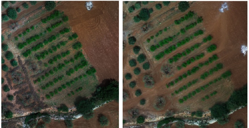 Immagini di appezzamento coltivato ad ulivi pre aratura (immagine a sx) e post aratura (immagine a dx)